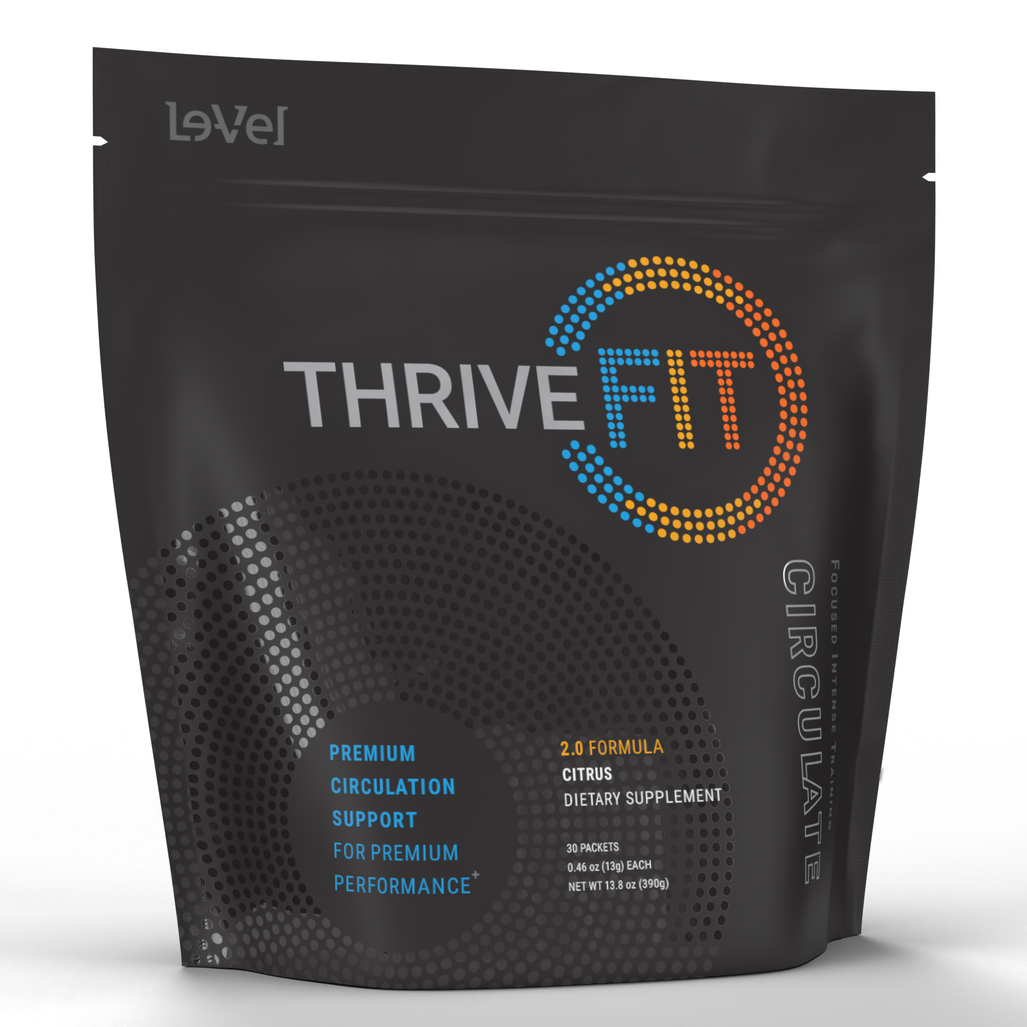 THRIVEFIT Circulate is a precise and proprietary blend of amino acids, powered by incredibly high performance forms of L-Arginine (3000 mg) and L-Citrulline (1000 mg). Circulate is designed to elevate your nitric oxide levels and provide noticeable results in your exercise performance.